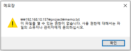퍼미션을 주지 않은 상태에서 파일 수정시 나타나는 에러화면이다.