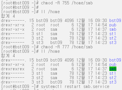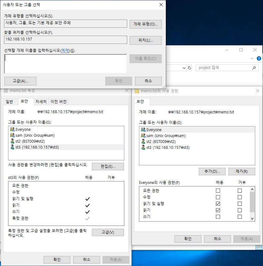 2가지 방법으로 생각을 해보았다. st01사용자와 te03사용자가 유닉스 사용을 할 수 없으니 윈도우만을 사용하는 방법과 관리자가 st01사용자와 te03사용자를 위해 samba 파일을 수정하는 방법이다.