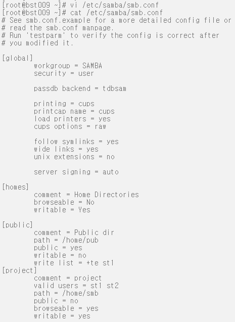 smb.conf의 구문 오류 검사는 /usr/bin/testparm를 통해 확인한다.