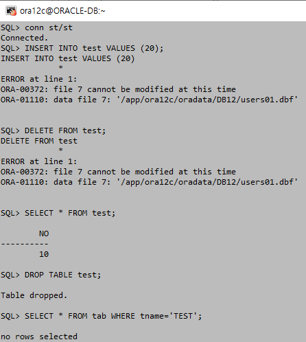읽기전용 테이블 스페이스는 테이블 스페이스 내의 데이터파일을 전부 READ ONLY상태로 바꿔준다. 따라서 수정이 불가능 하지만 DROP은 가능하다. 데이터파일의 내용을 수정하는 것과 데이터파일을 삭제 하는 것은 다르기 때문이라고 생각한다. 그리고 DROP이 가능하다면 읽기전용을 사용할 필요가 있을까에 대한 답은 데이터에 대한 조회를 해야 그 데이터에 의미가 있기 때문이라고 생각한다. 하지만 읽기전용을 하지 않는다면 수정이 가능해지기 때문에 읽기전용의 의의가 여기 있다고 생각한다.